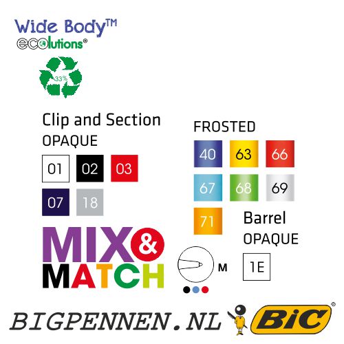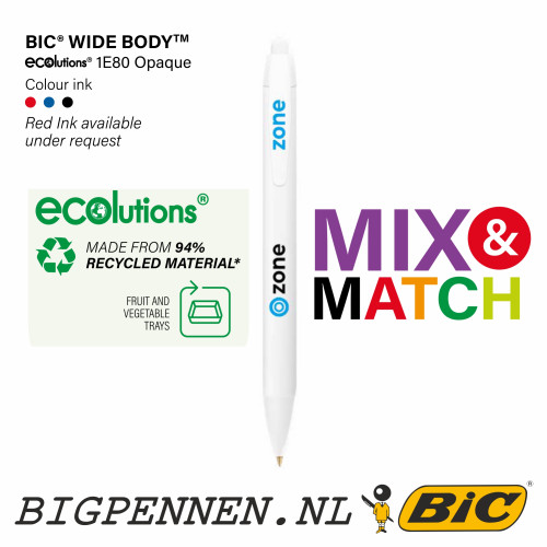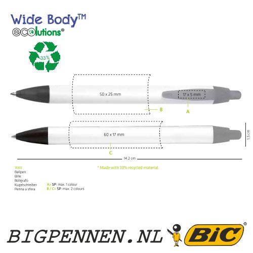 BIC® Wide Body™ ECOlutions balpen bedrukt met uw logo of tekst in maximaal 2 kleuren op de houder en 1 kleur op de clip.